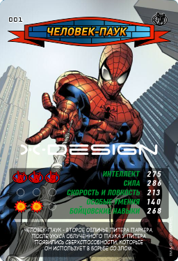 Коллекционная карта №001: Человек-Паук, Marvel Человек-Паук. Герои и Злодеи, Часть 1.